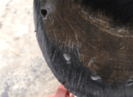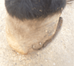 Descrizione: Il tarlo indica una patologia dello zoccolo che causa lo scollamento della muraglia dai tessuti sottostanti.