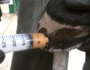 Nel caso ciò fosse già avvenuto, applicare il prodotto in particolar modo su forchetta e corona favorirà l'assorbimento dello stesso e, grazie alla elevatissima capillarizzazione podale, verrà prima assorbito e successivamente trasferito ai distretti limitrofi coinvolti.