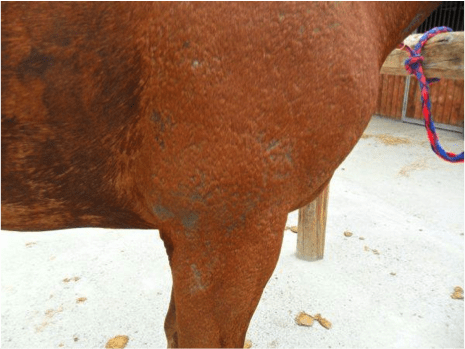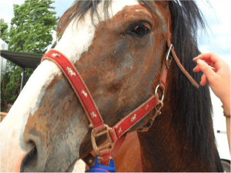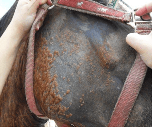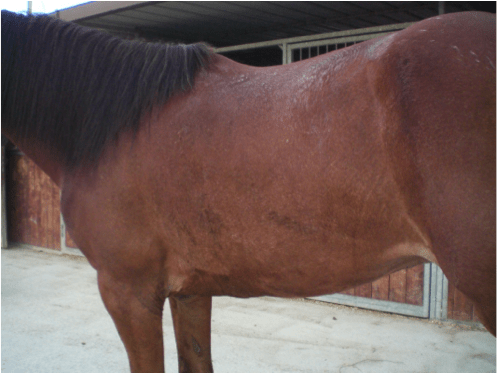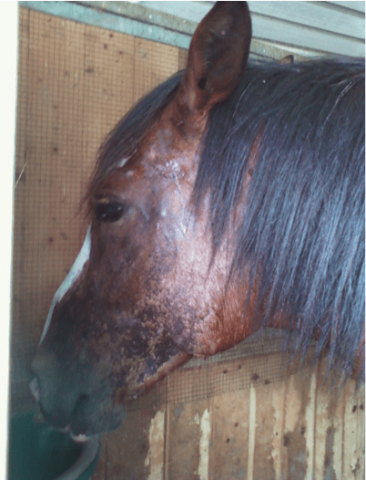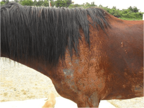 Descrizione: La dermatite estiva del cavallo può essere facilmente scatenata da morsi e punture d'insetti e dal contatto con la saliva dei moscerini. Colpisce cavalli di ogni razza.