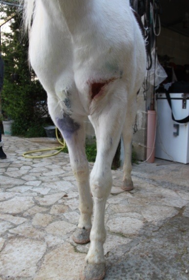 Cavallo - Lesione traumatica al treno posteriore destro