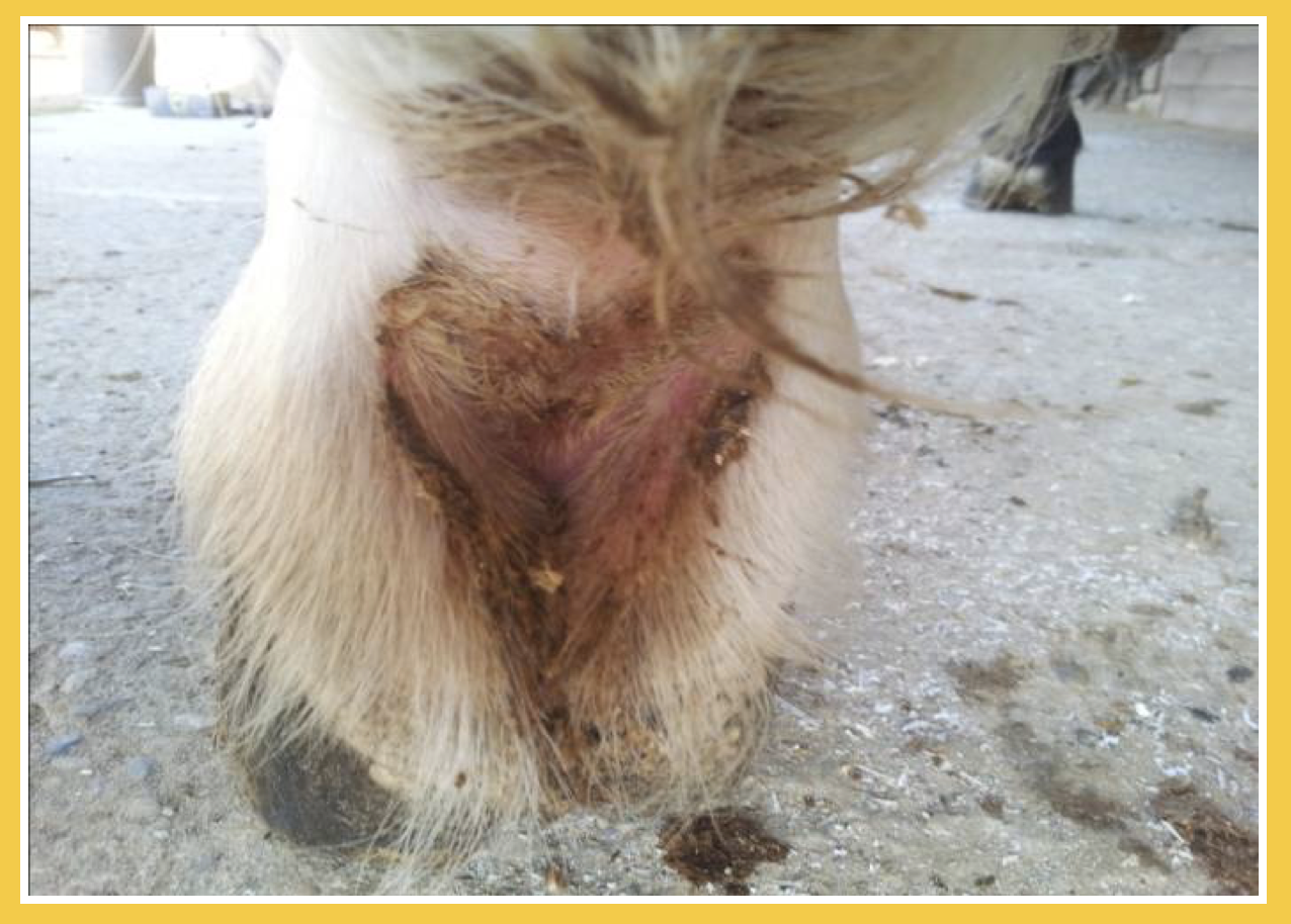 Descrizione: Definizione comune per indicare una manifestazione di lesioni biancastre, purulente, sanguinolente con crescita di peli ispidi. Causata da una dermatite della corona. Trattata con Hypermix® si risolve con successo. Si lava con acqua e sapone neutro, si applica 1 volta al dì, se si usa l'olio e due volte al dì se si usa la crema/gel.